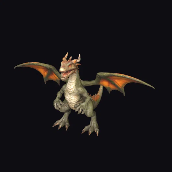 In a powerful stance, this dragon rises on its hind legs, commanding attention with its imposing presence. The torso, resembling a giant fallen tree, is covered in moss and clusters of vibrant orange growth, adding a touch of eerie beauty. Its wings, a mesmerizing blend of green and orange, are spread wide, showcasing the dragon’s readiness to take flight or unleash a fiery breath. The head, adorned with sharp horns, features piercing eyes and rows of sharp teeth, highlighting its fearsome nature. This model is perfect for games, 3D printing, VR/AR experiences, animation, and design projects, offering a unique blend of fantasy and realism.