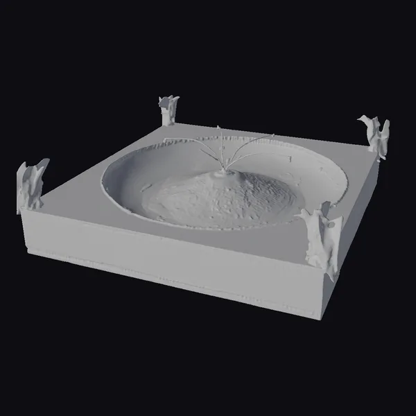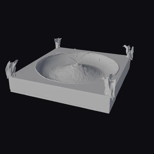 This intricately detailed, 3D model of an ancient earth map display showcases a circular, raised map of the world on a sturdy, square base. The map itself features a stone-like texture with visible blue accents, representing oceans. Four ornate, abstract protrusions adorn the corners of the base, adding to the piece’s mystique. The entire display exudes an air of antiquity, as if unearthed from a long-forgotten civilization. The level of detail, from the texture of the stone to the subtle markings on the map, makes this model perfect for use in games, animations, or architectural visualizations. Designers and artists can utilize this model to add a touch of history and mystery to their projects.