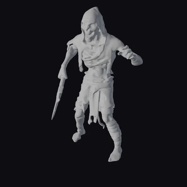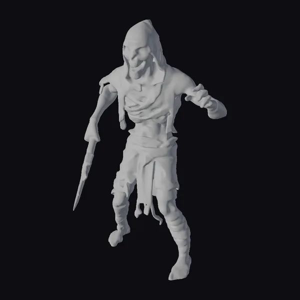 Standing tall with arms outstretched, this meticulously crafted 3D model of an ancient Egyptian mummy warrior showcases intricate details, from the tattered bandages to the gold accents on its wrappings. The mummy’s face is a masterful blend of horror and mystique, with sunken eyes and a snarling mouth. The dagger in its hand appears ready to strike, capturing the dynamic pose of an attacker. This model is perfect for use in games, 3D printing, VR/AR experiences, animations, and designs where a touch of ancient horror and mysticism is required.