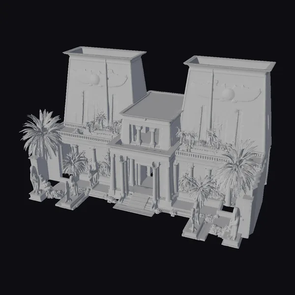 Gaze upon the majestic facade of this ancient Egyptian palace, its sandstone walls bathed in warm, golden light. The structure boasts an impressive array of details, from the intricately carved columns and statues to the lush palm trees and serene pools. With its stylized yet authentic design, this model is perfect for use in games, animations, or architectural visualizations. The palace’s imposing towers, adorned with symbolic hieroglyphics and winged motifs, evoke a sense of awe and wonder. Whether you’re creating a historical drama or a fantastical world, this Egyptian palace structure is sure to leave a lasting impression.