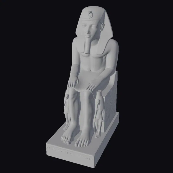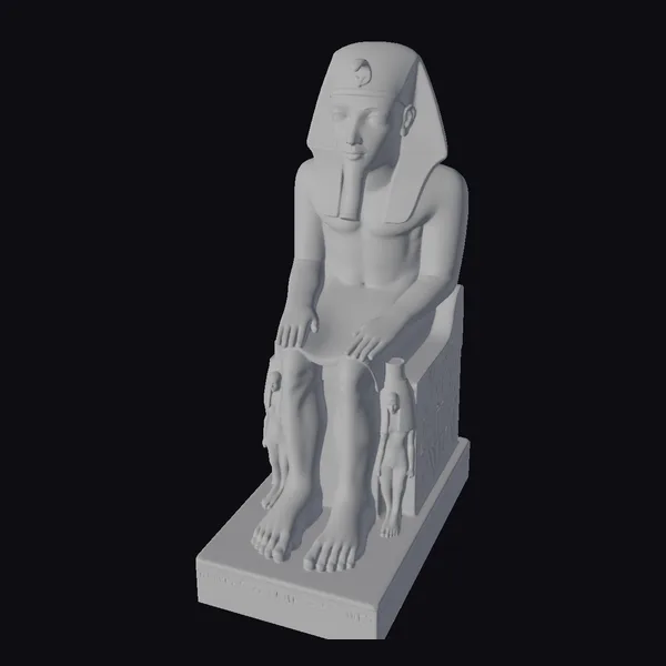 Positioned in a powerful yet serene pose, the pharaoh sits atop a detailed throne, hands resting on knees, embodying the essence of ancient Egyptian royalty. The statue’s surface is rich with texture, from the smooth stone of the throne to the intricate folds of the pharaoh’s ceremonial garb. The headpiece, a symbol of divine authority, crowns the figure, while the base, adorned with hieroglyphics, grounds the statue in historical context. Ideal for projects requiring a touch of ancient majesty, this model is suited for games, animations, architectural visualizations, or historical reconstructions, offering a blend of authenticity and artistic expression.