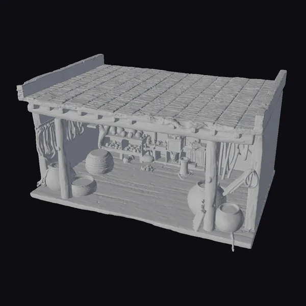 Gaze upon the rustic elegance of this ancient Egyptian supply depot, where every beam and plank seems to whisper tales of a bygone era. The 3D model showcases an open-sided storage building, circa 2560 BCE, with wooden posts supporting a flat roof, tool racks, and neatly organized rope storage. The interior is a marvel of ancient logistics, with shelves stacked with pottery, tools, and other essential supplies. The exterior’s warm, earthy tones beckon you to explore the nooks and crannies of this ancient warehouse. Ideal for use in games, 3D printing, VR/AR experiences, animation, and design projects, this model promises to add a touch of authenticity and historical flair.