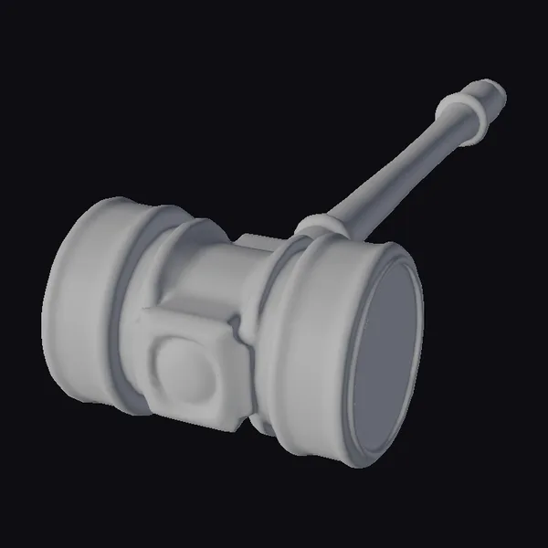 Detailed with precision, this hammer’s cylindrical head features a series of raised, metallic bands and a central, glowing rivet. The long, slender handle shows signs of extensive use, with a worn, dark brown patina. The overall design suggests a blend of ancient technology and mythical power. Ideal for use in games, animations, or 3D printing projects that require a touch of legendary craftsmanship.