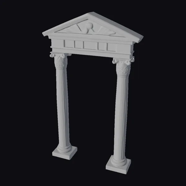 Gaze upon the majestic beauty of this ancient Greek column arch, where every detail, from the delicate carvings on the pediment to the subtle fluting on the columns, has been painstakingly recreated. The model boasts a serene white and gold color scheme, evoking the timeless elegance of classical Greek architecture. Standing tall on square bases, the two columns rise to meet the pediment, which features a stunning array of carved motifs. This model is perfect for projects requiring a touch of historical authenticity, whether for architectural visualization, game development, or educational purposes. Its high level of detail and realistic appearance make it an invaluable asset for any creative or professional endeavor.