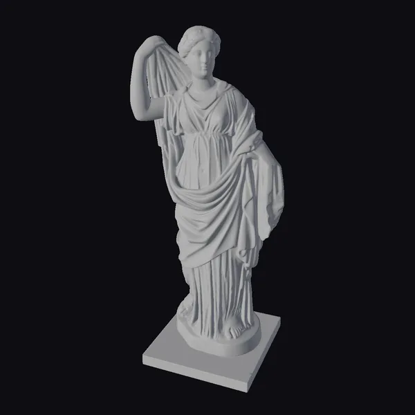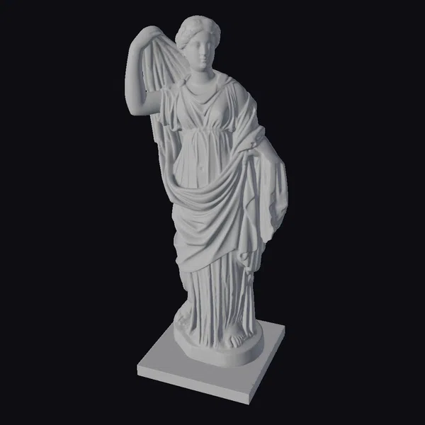 Positioned in a graceful stance, the statue showcases a woman draped in flowing attire, her right arm raised to adjust her hair, which cascades down her back in intricate detail. The base, simple yet sturdy, grounds the figure, while the overall composition conveys a sense of calm and dignity. The texture of the marble, with its subtle veining, adds depth and realism to the piece. This 3D model is perfect for projects requiring a touch of classic elegance, suitable for use in games, 3D printing, VR/AR experiences, animation, and design applications.