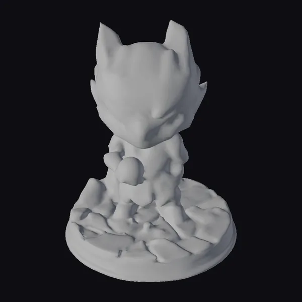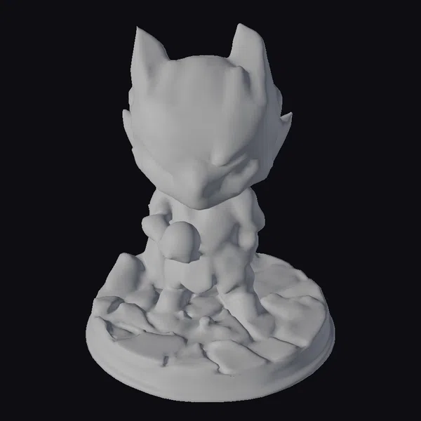 This intricately detailed statuette showcases a robot creature with a cracked, metallic body and vibrant yellow-green accents of decay. The creature’s glowing blue optics seem to pierce through the darkness, as if guarding secrets of a bygone era. Perched atop a rocky outcropping, the statuette exudes an otherworldly aura. The model’s weathered appearance and intricate textures make it perfect for use in sci-fi games, animations, or as a unique decorative piece. Its small size and detailed features also make it ideal for 3D printing or virtual reality applications.