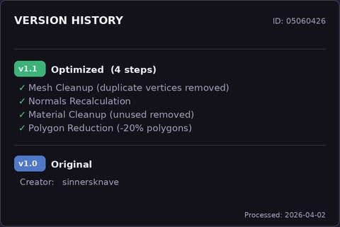 Further optimized in this latest version 1.1, this Very High Poly Premium 3D model is available immediately in GLB and STL file formats and can be purchased with licenses for both personal and commercial use.