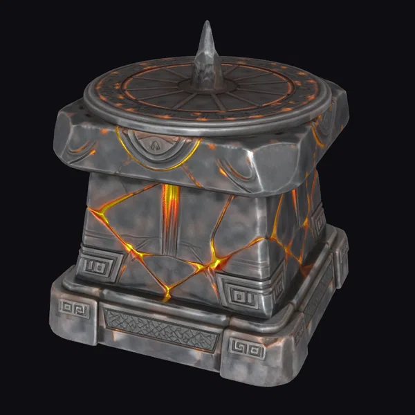 Perched atop a square base, the Ancient Lava Oracle Box rises with a stepped, angular silhouette, its surface etched with mysterious symbols and adorned with a spiked lid. The box’s body appears cracked and fissured, with glowing orange and yellow lines tracing through the stone, casting an otherworldly glow. As the eye travels upward, the lid’s circular design draws focus, punctuated by a sharp, central spike. This 3D model would be a captivating addition to any fantasy or sci-fi environment, suitable for use in games, 3D printing, VR/AR experiences, animation projects, or architectural visualizations. Its unique blend of ancient mysticism and fiery energy makes it an excellent choice for designers seeking to infuse their work with a sense of enchantment and wonder.