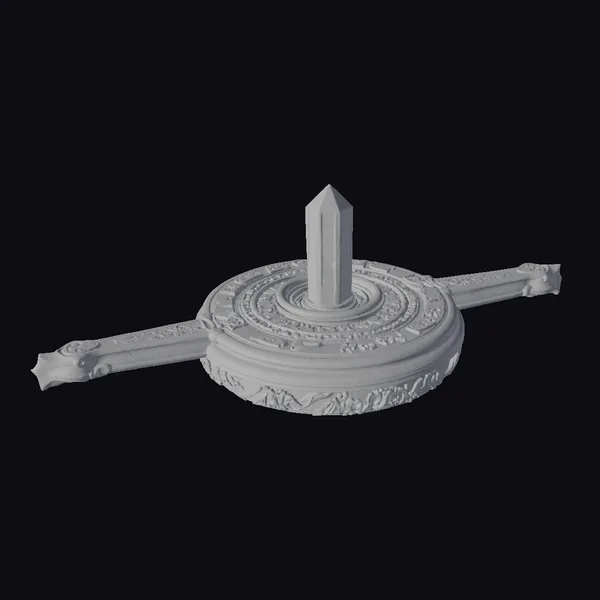 In a world where magic and mystery entwine, this ancient artifact stands as a testament to the ingenuity and mysticism of a bygone age. The device’s base is a masterclass in intricate design, with golden filigree and ornate patterns etched into its gray, metallic surface. A central crystal, pointed and oblong, rises from the heart of the artifact, emitting an aura of mystique. The handles, sturdy and black, are poised for action, suggesting a time when such devices were wielded by powerful sorcerers. Whether for games, print, VR/AR, animation, or design, this model invites you to unlock its secrets and weave your own tales of magic and adventure.