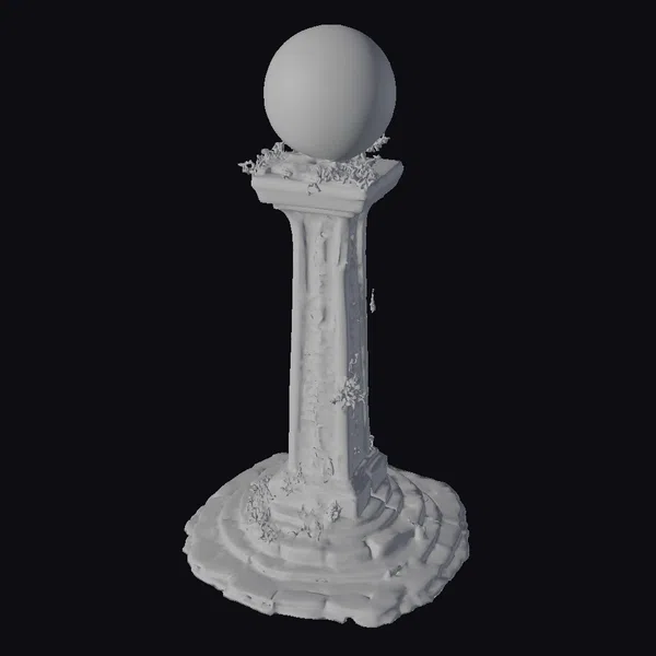 Standing tall with a sturdy, tiered stone base, the ancient magical pylon’s pillar is adorned with carved details and vines, giving it an air of aged mysticism. Atop this structure, a large, luminous crystal orb glows with a soft, ethereal light, as if imbued with magical energy. The model’s surface is rich with texture, from the rough, moss-covered stones to the smooth, reflective surface of the orb. This pylon is perfect for adding a touch of fantasy and magic to games, animations, or 3D scenes, transporting viewers to a world of wonder and enchantment.