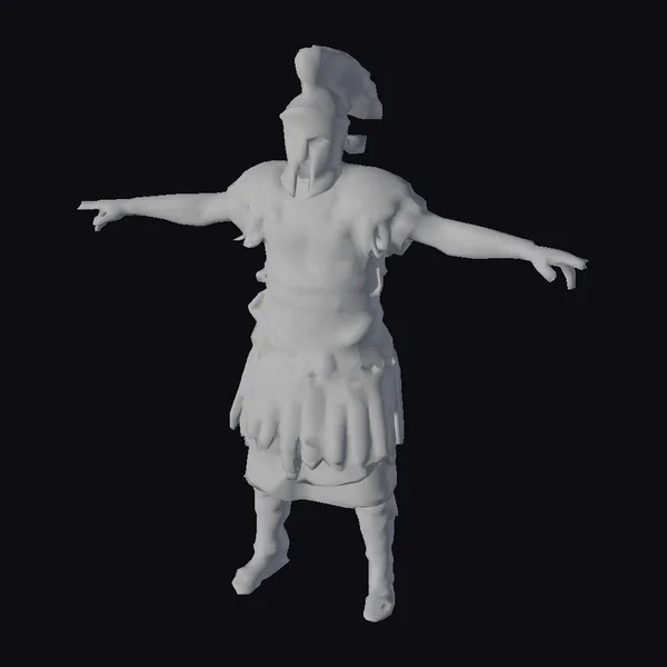 This meticulously crafted 3D model of an ancient Roman warrior showcases intricate details, from the weathered texture of his armor to the dynamic pose that captures a moment of command or defiance. The warrior’s attire, including a segmented breastplate, a pleated skirt, and greaves, is accurately rendered to reflect historical accuracy while also emphasizing a strong, heroic stance. The arms outstretched, as if rallying troops or asserting dominance, add a narrative depth to the model. Ideal for use in historical reconstructions, educational projects, or as a compelling element in games and animations, this model brings ancient Rome to life with precision and artistic flair.