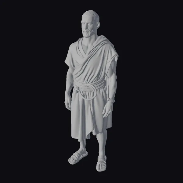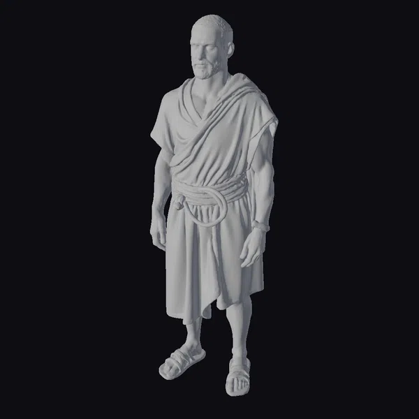 Standing with a slight slouch, the man’s posture conveys a sense of exhaustion, his muscles strained from the rigors of physical toil. The tunic, draped elegantly yet practically around his form, showcases the ingenuity of ancient Roman attire. The rope, wrapped securely around his waist, not only serves as a makeshift belt but also symbolizes his subjugation. His facial features, etched with lines of hardship, narrate a story of survival and endurance. This 3D model, with its meticulous attention to detail, is poised to bring authenticity to projects requiring a character that embodies the trials and tribulations of ancient times. Whether for historical reenactments, educational purposes, or creative storytelling, this model is an invaluable asset.