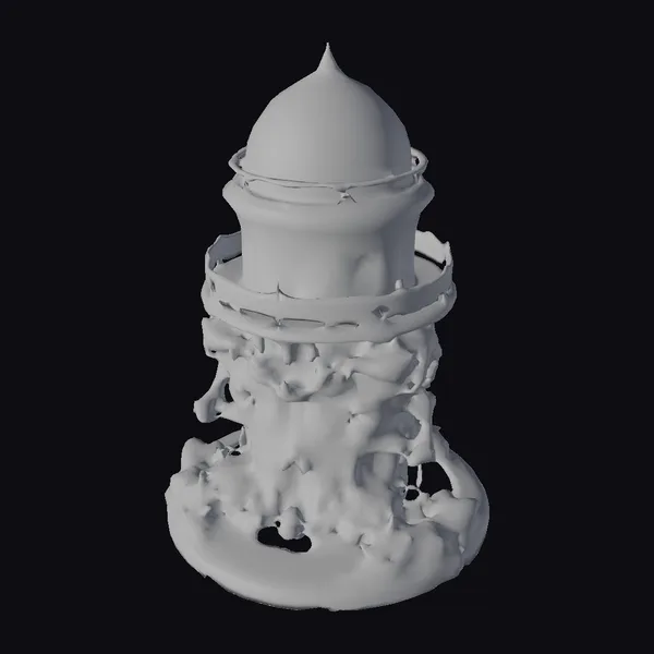 In a state of elegant decay, this ancient round tower stands as a testament to a bygone era. Its base, enveloped in vibrant green moss, contrasts with the weathered stone of the tower’s body, which features multiple levels. Each level boasts arched windows that allow glimpses into the tower’s mysterious interior. Supported by intricately detailed stone columns, the structure’s design speaks to a rich history. The pièce de résistance is the tower’s culmination in a stunning glass-domed roof, its panes separated by thin metal strips, suggesting a blend of functionality and beauty. This model is perfect for projects requiring a touch of fantasy or ancient mystery, suitable for games, 3D printing, VR/AR experiences, animation, and architectural design.