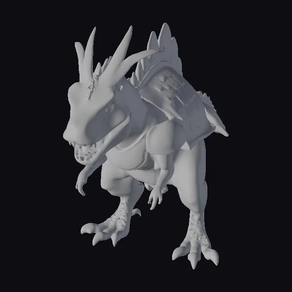 Detailed with precision, this model captures the essence of a prehistoric creature transformed into a samurai warrior. The T-Rex stands with one foot forward, as if ready to charge. Its body is a blend of dinosaur and samurai armor, with a predominantly dark color scheme accented by beige on its chest. The head, with its sharp teeth and distinctive horns, is a focal point, exuding a sense of ancient power. The model is meticulously crafted with attention to detail, from the texture of its skin to the structure of its armor. Ideal for use in games, 3D printing, VR/AR experiences, animation, and design projects, this model brings a touch of fantasy and history together.