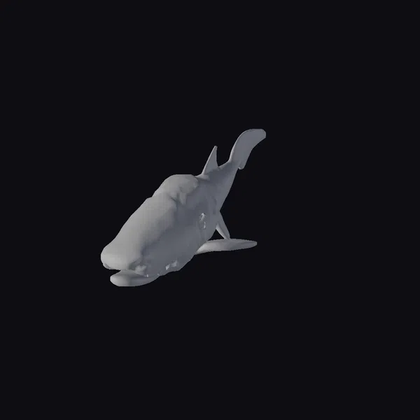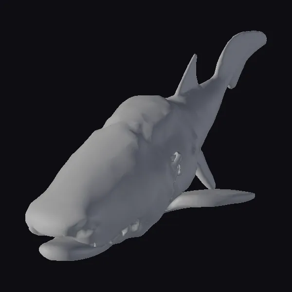 Pose yourself alongside this colossal, ancient sea creature, its body frozen in a dynamic, slightly twisted position, as if caught mid-swim through the depths of time. The model’s texture masterfully captures the rough, worn appearance of a fossil, with intricate details like the subtle curvature of the dorsal fin and the powerful build of the tail. The shark’s skin exhibits a predominantly gray color scheme, accented with yellow and blue undertones that suggest the patina of age. Its mouth is slightly ajar, revealing a glimpse of the formidable teeth that once ruled the oceans. This 3D model is perfect for use in games, 3D printing, VR/AR experiences, animations, or designs that require a touch of the ancient and the wild.