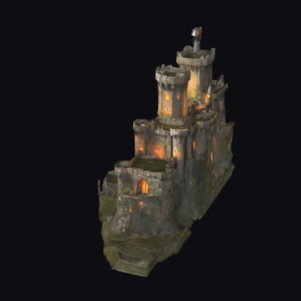 Detailed to perfection, this ancient sea fortress boasts intricate stonework, with moss-covered walls and towers that seem to defy gravity. Warm, golden light spills from lit windows and halls, casting a sense of warmth and comfort within. The structure’s imposing presence is softened by lush greenery, which has begun to reclaim the crumbling stones. Ideal for use in games, animation, or architectural design, this model transports viewers to a world of medieval fantasy and adventure. Its unique blend of rugged grandeur and natural beauty makes it perfect for adding depth and atmosphere to any scene.