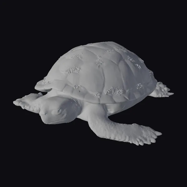 Perched on the ocean floor, this majestic sea turtle exudes an aura of timeless wisdom. Its enormous shell, a deep green with hints of brown, is etched with deep grooves and adorned with vibrant green moss, as if the sea itself had claimed it as its own. The turtle’s flippers, strong and sturdy, are textured with fine scales that catch the light, while its eyes seem to hold a deep, ancient knowledge. The model is meticulously detailed, with a focus on realism that makes it perfect for use in games, 3D printing, VR/AR experiences, animation, and design projects. The turtle’s serene expression and gentle demeanor evoke a sense of calm, inviting viewers to step into the tranquility of the ocean’s depths.