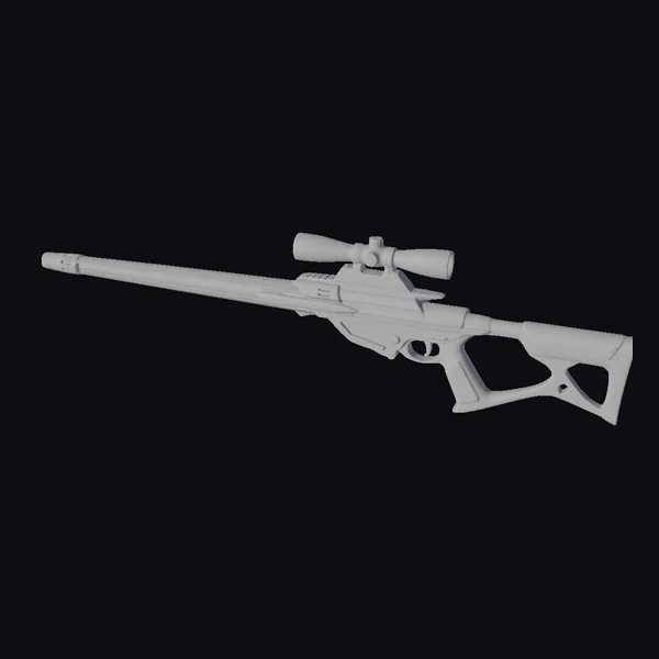 Perched atop this ancient sniper rifle is a sophisticated scope, adding to its air of precision and deadliness. The rifle’s body is a masterclass in contrasting materials, with dark, worn metal giving way to tan, almost organic accents. The overall design is a blend of functionality and ceremonial grandeur, suggesting a culture that revered both the art of war and the mystique of technology. The asymmetric structure and cathedral-like lines make this rifle not just a tool for hunting or combat, but a statement piece. Ideal for use in games, 3D printing, VR/AR experiences, animation, and design projects seeking a touch of sci-fi mystique.