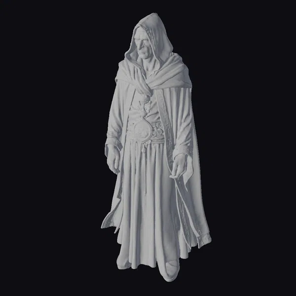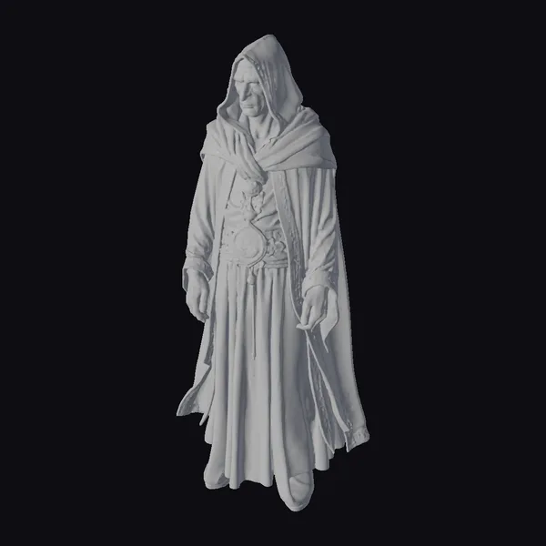 In a pose that exudes mystique and power, the ancient spectral sorcerer towers with an imposing presence. His pale, stone-like skin is infused with a subtle blue glow, suggesting an ethereal energy coursing through his being. The sorcerer’s eyes burn with an inner fire, glowing red and seeming to pierce through the veil of reality. Adorned in a tattered grey robe that flows like the shadows themselves, intricate mystical runes dance across the fabric, pulsing with a soft, eerie light. This 3D model captures every detail, from the folds of the robe to the intense gaze, making it perfect for use in games, 3D printing, VR/AR experiences, animation, and design projects that require a touch of dark fantasy and ancient magic.