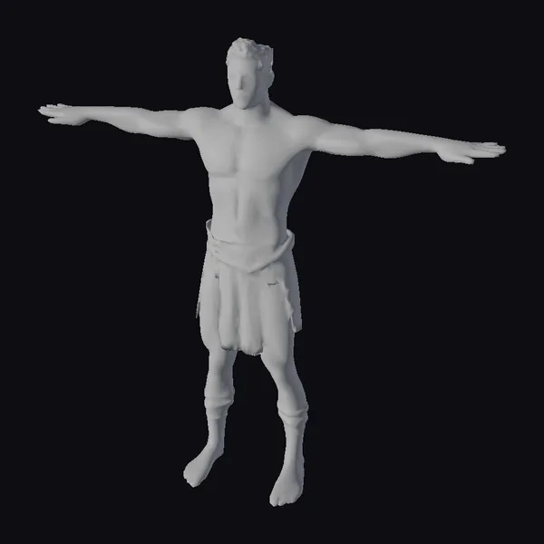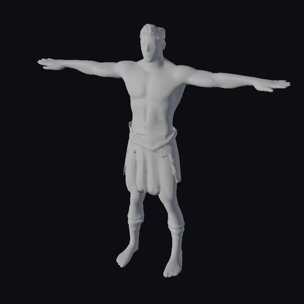 This 3D model depicts a strong and calm ancient Sri Lankan warrior male with short to medium-length black hair, possibly tied or with a traditional headband. He stands with his arms outstretched, showcasing his muscular build. The warrior wears a traditional loincloth secured by a belt and leg wraps, emphasizing his ethnic and ancient origins. The model’s serene facial expression and calm demeanor highlight his inner strength. The detailed textures and realistic proportions make this model suitable for various applications, including games, 3D printing, VR/AR experiences, animation, and design projects.