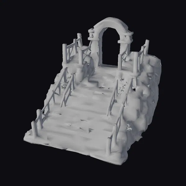 Perched atop a rugged outcropping, the ancient stone archway stands sentinel, its weathered stones bearing the scars of time. The structure’s base is a marvel of texture, with moss and lichen clinging to the rough-hewn blocks, while the wooden railing, worn to a soft gray, adds a touch of rustic charm. As the eye travels upward, the archway’s intricate carvings and the stairs’ gentle slope draw the viewer into a world of fantasy and discovery. This 3D model is perfect for game developers, architects, and artists seeking to add a touch of ancient mystique to their projects. Whether used in a fantasy game, architectural visualization, or animated film, this model is sure to transport viewers to a world of wonder.