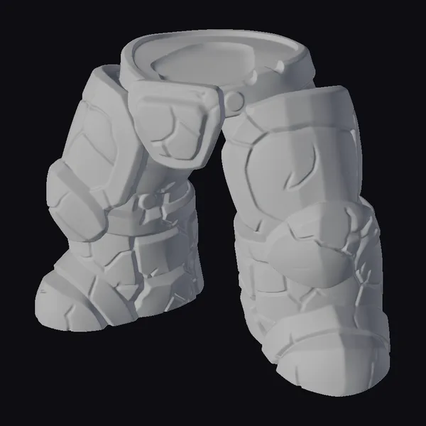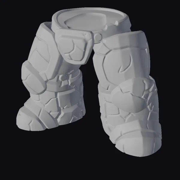 Perched atop a dark brown metallic base, these stone armor legs exude an aura of age and resilience. The cracked, stone-like texture is beautifully detailed, with vibrant green veins snaking across the surface, suggesting a long-forgotten vitality. As if pulled from the depths of a mystical realm, these legs are poised to protect their wearer from the harshest of battles. Whether you’re crafting a fantasy game, animating an epic tale, or designing a breathtaking scene, these ancient stone armor legs are sure to leave a lasting impression.