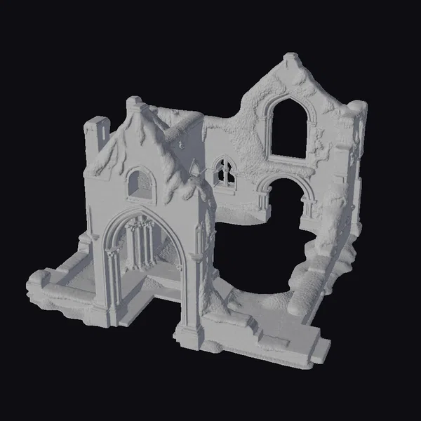 Perched precariously on the edge of oblivion, this ancient stone church ruin stands as a poignant reminder of the transience of human endeavor. The intricate details of its stonework, once a testament to the skill of long-forgotten craftsmen, now lie weathered and worn, bearing the scars of countless seasons. The walls, once proud and unyielding, now stand partially standing, their surfaces cracked and fissured, with large sections missing. The roof, long since lost to the ravages of time, exposes the interior to the elements, while the arches, once soaring and elegant, now stand broken and still. The stained glass windows, once vibrant and full of color, now hang empty, their frames a stark reminder of what once was. As nature slowly reclaims this sacred space, moss and vines weave their way through the crumbling stones, imbuing the structure with a sense of melancholy and longing. This 3D model of the ancient stone church ruin is perfect for use in games, architectural visualizations, or as a backdrop for creative projects, offering a richly detailed and evocative setting that invites exploration and contemplation.