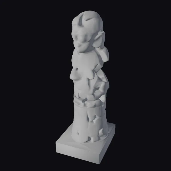 Perched atop a sturdy base, this ancient stone figure fragment stands as a testament to the enduring power of art. The model’s surface texture, meticulously crafted to resemble worn stone, invites the viewer to ponder the stories it could tell. As light dances across its surface, the subtle nuances of beige and tan hues come alive, imbuing the piece with a sense of history. With its intricate details and weathered appearance, this fragment is poised to add a touch of sophistication to any project, be it in games, print, VR/AR, animation, or design.