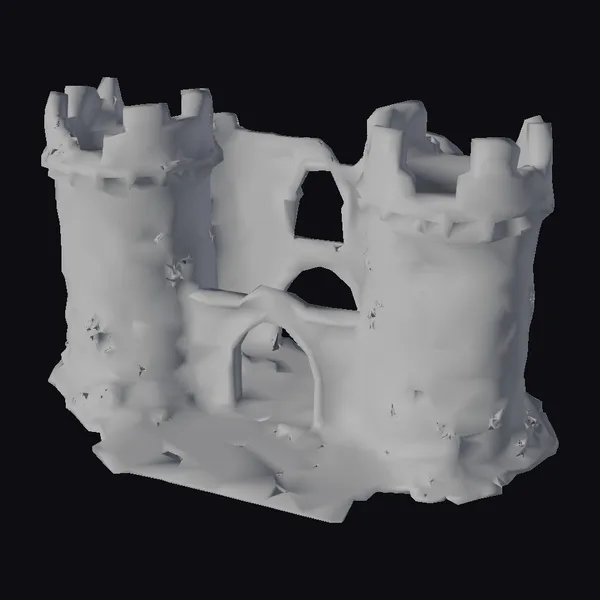 Perched atop a subtle rise, the ancient stone fortress ruins exude an aura of mystique and forgotten grandeur. Two imposing towers flank a central archway, their surfaces a tapestry of weathered stone blocks, adorned with patches of vibrant green moss and lichen. The walls, crafted from rough-hewn stone, tell tales of countless seasons, their textures a blend of rough and smooth, worn by time and the elements. As natural light dances across the structure, it highlights the intricate details: the cracks and crevices, the unevenness of the stone, and the soft, verdant overgrowth. This model is perfect for game developers, architects, and designers seeking to infuse their projects with a sense of history and mystique. Whether it’s for a fantasy game, a historical drama, or an architectural visualization, these ruins offer a rich backdrop for storytelling and world-building.