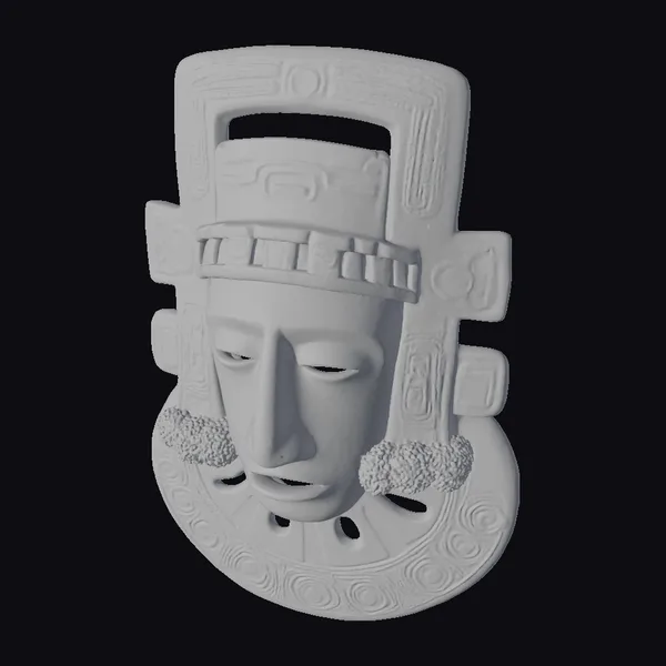 Gaze upon the tranquil visage of this ancient stone mask, its smooth, pale surface a striking contrast to the rugged, earthy tones that adorn its headdress and collar. The mask’s stylized face, with its closed eyes and enigmatic smile, seems to hold secrets of a bygone era. The intricate patterns etched into the stone – a mix of curved lines, circles, and geometric shapes – add an ornate touch, suggesting a rich cultural heritage. As a 3D model, this decorative piece can be used in various contexts, such as game environments, architectural visualizations, or even 3D printing. Its unique blend of rustic charm and stylized elegance makes it an excellent choice for designers seeking to add a touch of the exotic to their projects.
