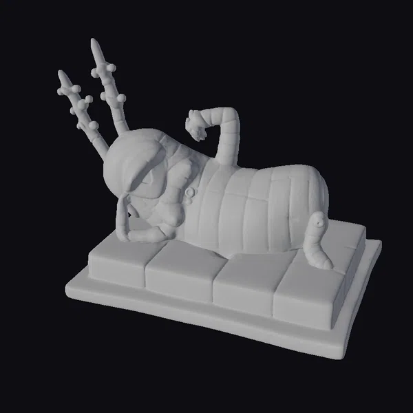 Positioned regally on a tiered stone base, the scorpion’s body is rendered in exquisite detail, with textured segments and a menacing curved tail. The stylized antennae-like structures rising from its head contribute to an otherworldly aura. The statue’s weathered appearance suggests age and resilience, inviting viewers to ponder its origins. Ideal for use in games, 3D printing, VR/AR experiences, animation, and design projects, this model brings a touch of ancient fantasy to any creative endeavor.