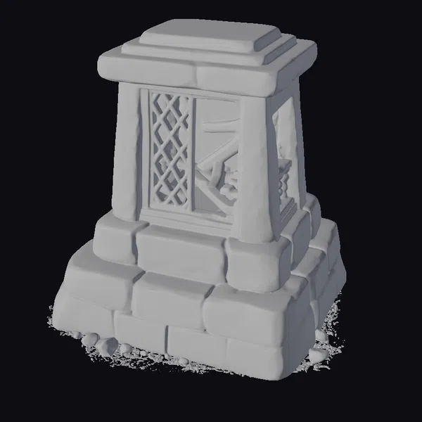 Crafted with meticulous attention to detail, this ancient stone shrine stands as a testament to a long-forgotten civilization. The structure’s base, composed of uneven stones, gives way to a more refined shrine body, adorned with a lattice-patterned window that hints at the mysteries within. The stone’s surface, marbled with shades of green and gray, tells the story of centuries of exposure to the elements. As light dances across its surface, the shrine seems to come alive, its beauty and mystery beckoning to those who dare to imagine its history. Ideal for use in games, 3D printing, VR/AR experiences, animation, and design projects, this model brings a touch of ancient mystique to any creative endeavor.