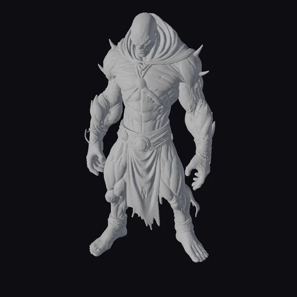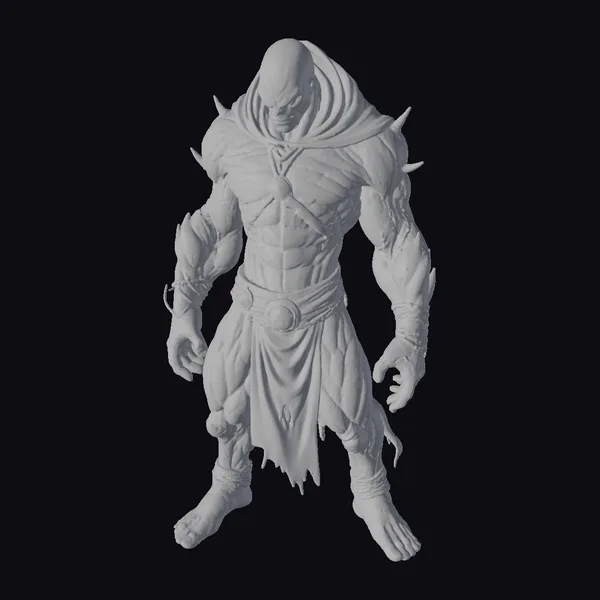 Standing in a powerful stance, this ancient stone titan is meticulously detailed with a blend of gray and pastel colors that give it a unique, almost ethereal appearance. The figure’s muscular build is accentuated by the stone-like texture covering its body, complete with defined muscles and a rugged, weathered look. The hooded cape drapes over its shoulders, adding to its imposing stature, while the loincloth and bands around its wrists and ankles hint at a storied past. This model is perfect for projects requiring a mythical or fantasy element, such as animations, games, or architectural designs that seek to transport viewers to another world. Its detailed design and realistic yet fantastical appearance make it a versatile asset for creators looking to add a touch of ancient mysticism to their work.