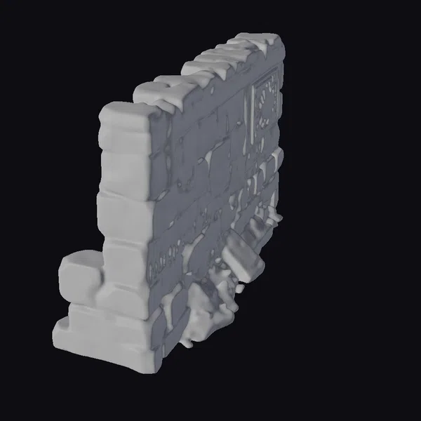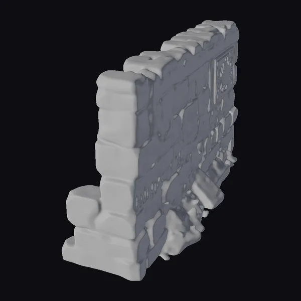 Perched at an angle, the ancient stone wall appears as if it has been plucked straight from the ruins of a forgotten city. The surface of the wall is a complex interplay of light and shadow, with deep cracks and crevices that speak to its age and exposure to the elements. Moss and lichen cling to its weathered stones, adding a touch of verdant life to the otherwise decaying structure. The wall’s intricate carvings, depicting scenes and symbols of a long-lost culture, are a testament to the skill and artistry of its ancient creators. As a 3D model, this ancient stone wall ruin offers a wealth of creative possibilities, from adding a touch of historical authenticity to games and animations, to serving as a unique piece in architectural visualizations or 3D printed as a decorative piece.