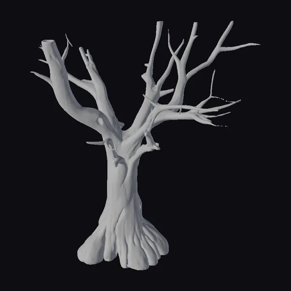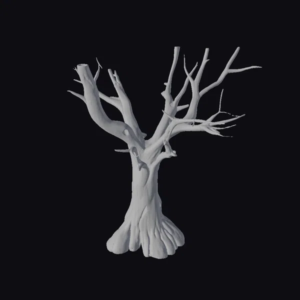Perched on a sturdy base, this intricately detailed tree sculpture showcases a twisted trunk with visible knots and grooves, while its sprawling branches seem to defy gravity. The wooden texture is meticulously rendered, with subtle variations in tone and grain that catch the light. Ideal for adding a touch of organic elegance to games, animations, or 3D environments, this model can also be used in architectural visualizations, or as a decorative piece in its own right. Its realistic appearance makes it perfect for print, VR/AR experiences, or detailed design projects.