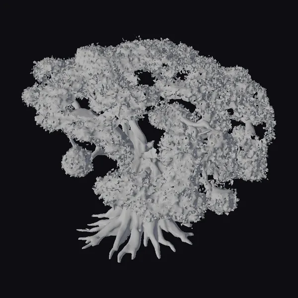 Crafted with meticulous attention to detail, this 3D model of an ancient tree with exposed roots showcases a thick, gnarled trunk that splits into numerous branches, supporting a dense canopy of vibrant green leaves. The roots, twisted and turned, emerge from the base of the tree, adding a sense of age and resilience. The texture of the wood and the intricate play of light and shadow on the leaves create a highly realistic and immersive experience. Ideal for use in games, 3D printing, virtual reality (VR) and augmented reality (AR) applications, animations, and architectural visualizations, this model brings a touch of natural beauty and tranquility to any digital environment.
