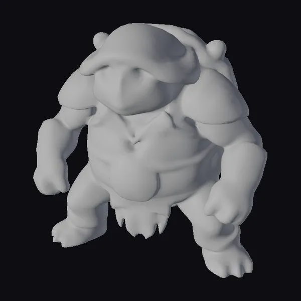 In a powerful stance, this turtle warrior showcases intricate details, from the textured armor plating on its arms and legs to the weathered, metallic finish on its shell. The facial features are stern, with a determined look that speaks to its ancient, battle-hardened demeanor. The model boasts a rich color palette, with hues of gray, brown, and metallic tones that give it a realistic yet fantastical appearance. Ideal for use in games, animations, or 3D printing projects where a mythical, strong creature is needed.