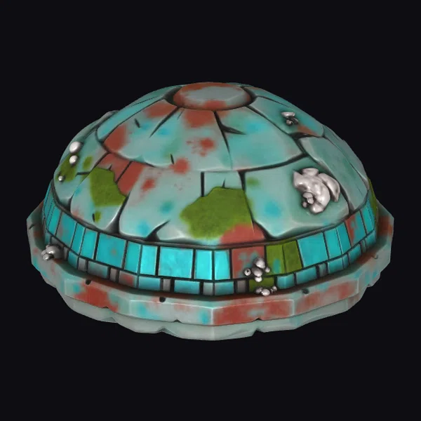 Perched atop a hypothetical underwater ruin, this ancient temple dome commands attention with its distinctive turquoise tiles and weathered stone exterior. Crafted with PBR materials, the model boasts realistic textures that invite exploration. The dome’s surface is cracked and worn, with algae-covered sections adding a pop of green to the predominantly blue and red hues. A series of small, metallic protrusions encircle the dome, hinting at a long-forgotten mechanism. Ideal for game developers, architects, and designers, this stylized asset can be seamlessly integrated into underwater environments, fantastical landscapes, or even sci-fi settings. Its modular design ensures versatility, allowing users to combine it with other assets to create immersive worlds.