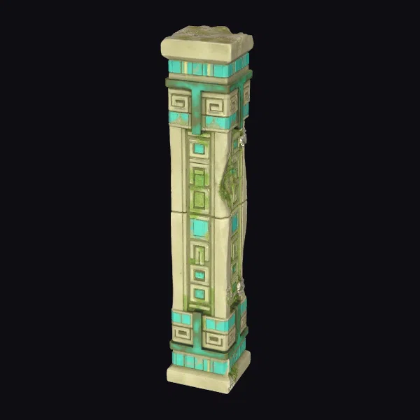 Standing tall with its square base and top, this ancient temple pillar showcases intricate details through its geometric patterns and textures. The stylized, low-poly design balances simplicity with detailed realism, featuring a predominantly beige stone structure complemented by vibrant turquoise accents. PBR materials enhance its realistic appearance, suggesting a worn, aged surface with visible signs of underwater erosion. Ideal for game developers, architects, and designers, this model can be seamlessly integrated into projects requiring modular ancient architecture, such as underwater ruins, fantasy settings, or historical reconstructions. Its modular nature allows for versatile configurations, making it a valuable asset for creating dynamic environments in games, animations, VR/AR experiences, and architectural designs.