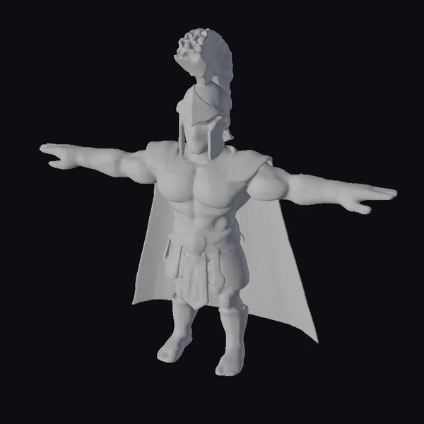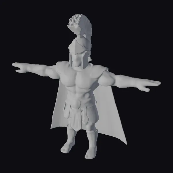 In a powerful T-pose, this stylized spartan warrior model showcases intricate details in his silver armor, complete with a red cape flowing behind him and a helmet topped with a dramatic crest. The armor’s metallic texture and the folds of the cape are rendered with high fidelity, inviting the viewer to imagine the story behind this fearless fighter. The model’s proportions and anatomy are well-defined, making it suitable for various applications, from animation and game development to architectural visualization and design projects. Its detailed and stylized appearance allows for versatile use in projects requiring a heroic or historical feel.