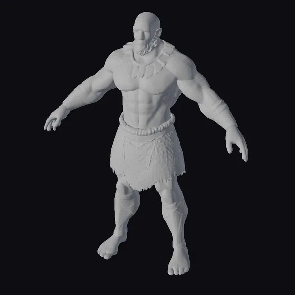 Standing tall with an authoritative stance, this 3D model of an ancient warrior king showcases intricate details in its muscular physique, golden armor, and tribal accessories. The character’s tanned skin, coupled with a distinctive black beard and bald head, adds to its mystique. The golden armor, including a chest plate, arm bands, and leg guards, contrasts with the earthy tones of the loincloth, creating a visually striking appearance. This model is perfect for projects requiring a character with a strong, historical, or mythological presence, such as animations, games, or architectural visualizations.