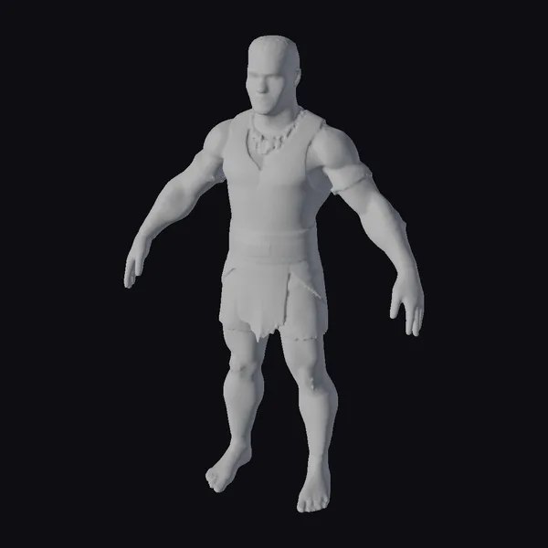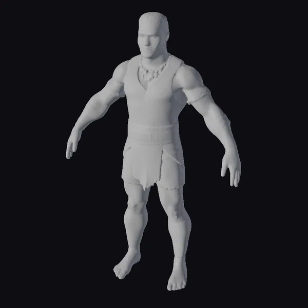Standing tall with feet shoulder-width apart, this ancient warrior showcases a blend of ruggedness and refined detail. His dark hair is cropped short, framing a determined expression. The tanned leather armor consists of a sleeveless top, a belted loincloth, and protective wraps around his arms and legs. A substantial stone necklace rests around his neck, adding to his fierce yet noble demeanor. The model’s realistic style brings to life the essence of a historical or mythological fighter, perfect for projects requiring a strong, heroic character. Whether for a game, animation, or design project, this 3D model is poised to make an impact.