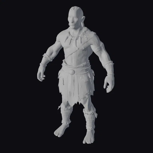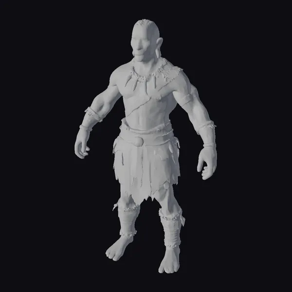 Rendered in exquisite detail, this powerful warrior figure boasts a chiseled physique, accentuated by a rugged, earth-toned costume that appears to be crafted from a combination of leather and fur. The character’s attire is complemented by an assortment of bone jewelry, including a striking necklace and armlets, adding to the overall aura of a fierce tribal fighter. The model’s pose, with one hand resting near the chest and the other hanging loosely by the side, conveys a sense of readiness and vigilance. The intricate textures and realistic shading bring the character to life, making this model an excellent choice for projects requiring a compelling, ancient warrior presence, such as games, animations, or historical reconstructions.