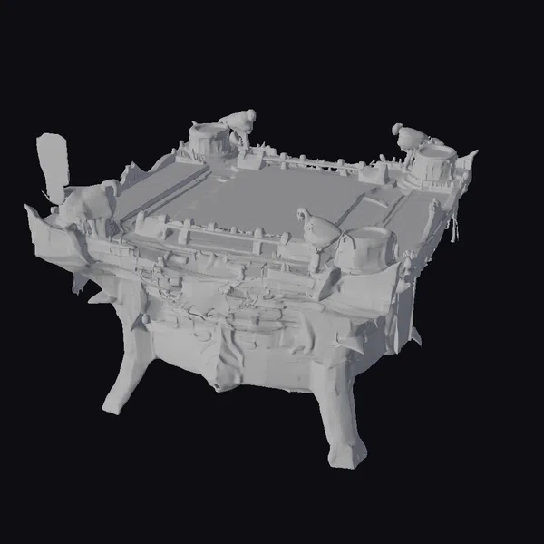 Perched on four sturdy legs, the ancient wooden game table boasts an ornate exterior with intricate carvings and details that tell a story of their own. The brown wooden surface features a lighter square inlay, adding a touch of contrast to the overall design. Weathered and worn, the table radiates a sense of history and mystique, perfect for fantasy settings or games. Its unique charm makes it an excellent addition to any 3D environment, from games and animations to architectural designs and virtual reality experiences.