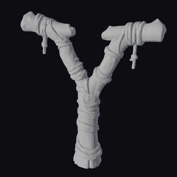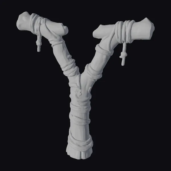 Crafted from aged wood and adorned with worn rope, this Y shaped object stands as a testament to a bygone era. The intricate wrapping of the rope around its body adds a layer of complexity and intrigue. The wooden texture, with its natural grains and imperfections, tells a story of years gone by. The object is posed upright, with the two ends of the Y pointing upwards, giving it a sense of resilience and strength. The metallic ‘Y’ emblem on the front adds a touch of modernity to this otherwise vintage piece. This model can be used in various contexts, such as game environments, 3D printing projects, virtual reality experiences, animations, and design visualizations, where a rustic yet symbolic element is needed.