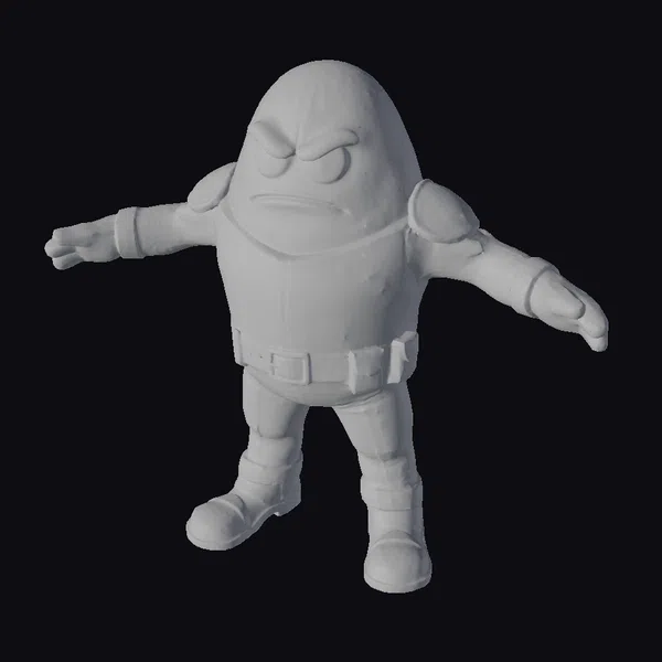 Standing tall with arms outstretched, the Angry Bean Character commands attention with its dynamic pose and detailed design. The character’s bean-shaped body is clad in a vibrant red jacket with black accents, complemented by dark gloves, pants, and boots. A brown utility belt cinches at the waist, adding a touch of practicality to its superhero-like appearance. The facial features are meticulously crafted, with thick eyebrows furrowed in a scowl, conveying a sense of determination or anger. This 3D model is perfect for projects requiring a unique, cartoonish character with a strong personality, suitable for animations, games, or as a decorative piece in 3D printing and virtual reality applications.
