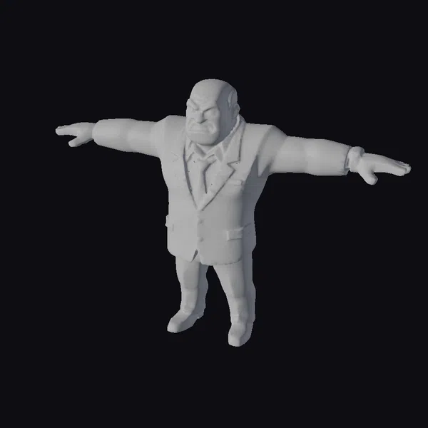 The Model “Angry Businessman T-Pose” is also available upon request in many other 3D formats, such as 3MF, BLEND, FBX, OBJ, USDZ and others, making it easy to integrate into your project.