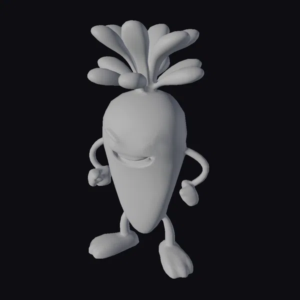 Detailed with precision, this cartoon carrot model boasts a menacing expression, complete with furrowed brows and a downturned mouth. Its slender, curved arms and legs are posed in a dynamic stance, conveying a sense of readiness. The leafy green top adds a pop of color and texture, contrasting beautifully with the carrot’s smooth, orange body. Ideal for animations, games, or any project requiring a whimsical touch, this model is sure to bring a smile. Its high-quality design ensures seamless integration into various creative ventures.
