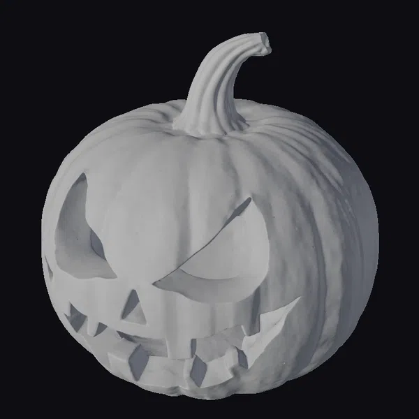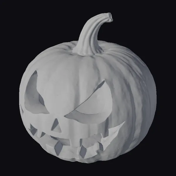 Positioned in a menacing stare, the jack-o-lantern’s face is expertly carved with sharp, jagged edges that seem to dance in the flickering candlelight emanating from within. The vibrant orange hue of the pumpkin contrasts sharply with the dark, glossy stem and the eerie blackness of its eyes. The texture of the pumpkin’s surface, complete with ridges and a subtle sheen, adds to the realism of this 3D model. Ideal for use in games, animations, or as a print-ready model for Halloween decorations, this angry jack-o-lantern is sure to evoke the spirit of the spookiest season.