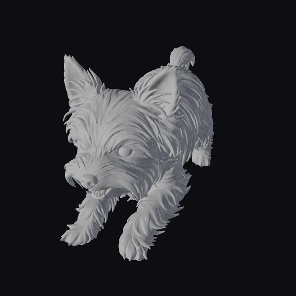 This stylized Yorkshire Terrier dog model exudes a fierce and angry demeanor, its body poised in a dynamic, forward-leaning stance. The fur is meticulously detailed, with shades of brown and tan that give the model a lifelike yet stylized appearance. The eyes are dark and intense, while the bared teeth add to the aggressive expression. The model’s pose, with its legs extended and tail curled, suggests movement and energy. The detailed textures and realistic proportions make it suitable for various applications, including games, animation, and 3D printing. The model’s unique blend of realism and stylization makes it a compelling addition to any project.